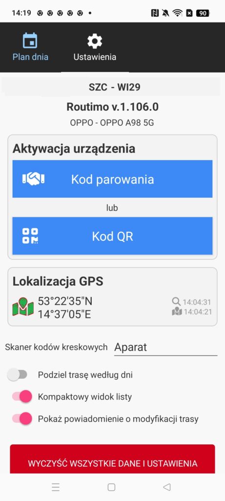 Użytkownik aplikacji mobilnej Routimo może samodzielnie zweryfikować poprawność działania lokalizacji GPS w ustawieniach urządzenia oraz sprawdzić dokładną godzinę kiedy nastąpił odczyt: